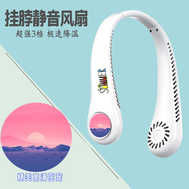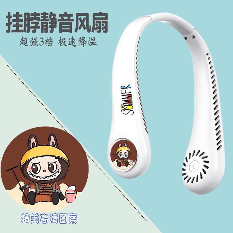 线条小狗挂脖式风扇usb充电户外便携夏季凉爽无叶扇大风力降温