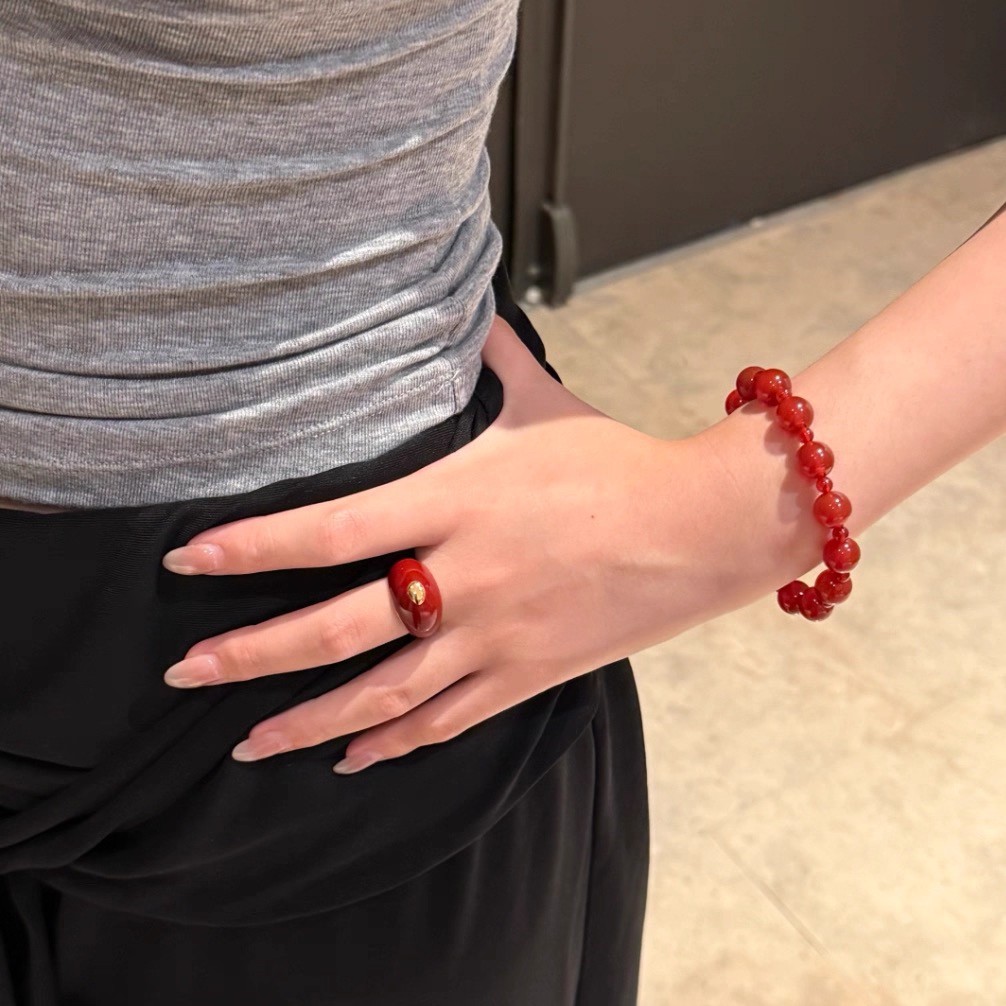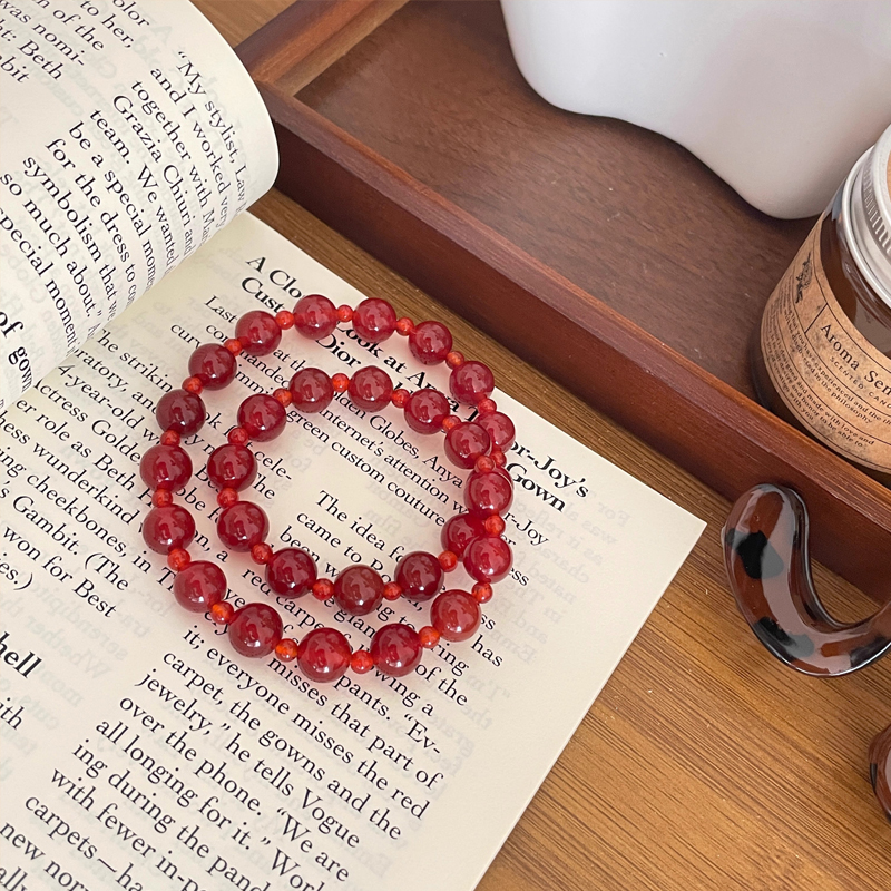 2025年新款正品红玛瑙手串女款双圈叠戴小众设计感本命年玉髓手链
