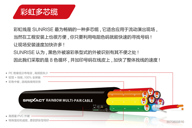 台湾日升彩虹2/4/8/12/16/24路多芯缆音频信号电缆线舞台通道录音
