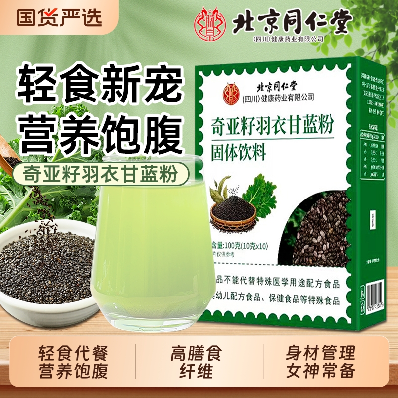 北京同仁堂奇亚籽羽衣甘蓝粉固体饮料代餐冲饮饱腹膳食纤维魅格格