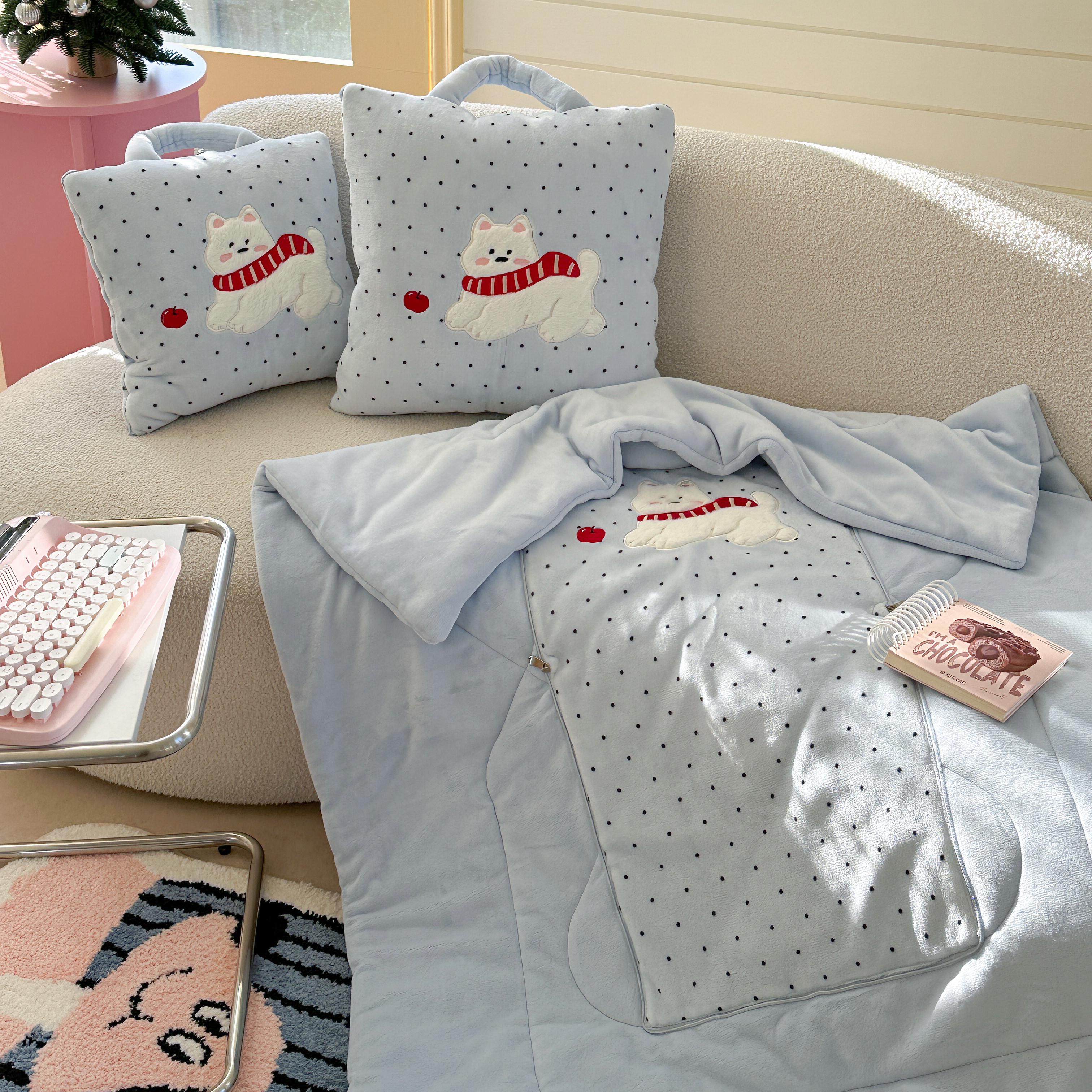 加厚牛奶绒小狗抱枕被子两用办公室客厅手提午休毯折叠学生靠垫冬