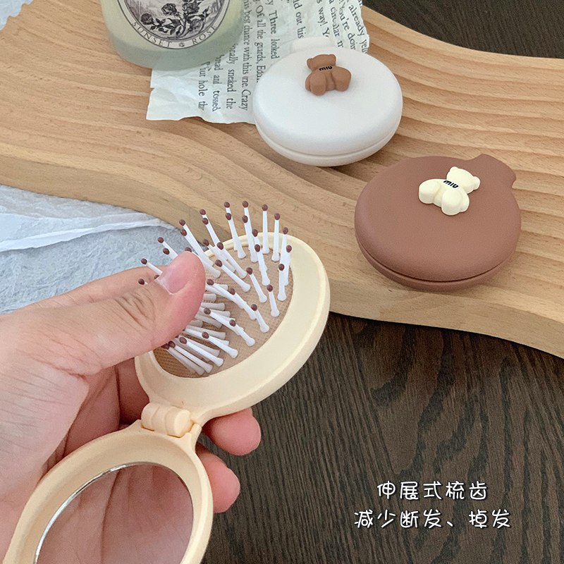折叠梳子小梳子随身便携气垫梳气囊梳带镜子梳子二合一迷你折叠梳