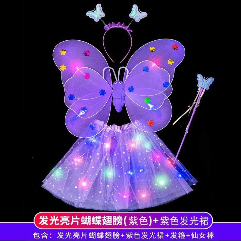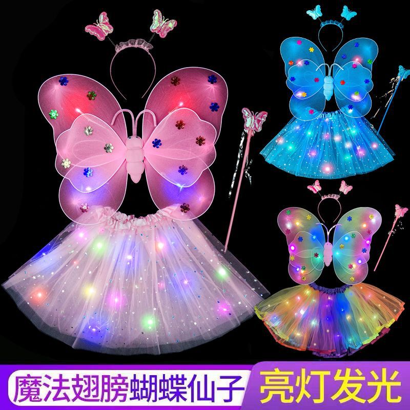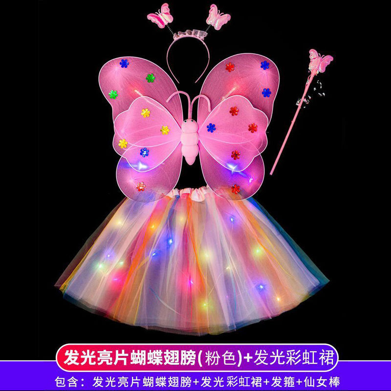 六一儿童节天使小女孩背的发光儿童蝴蝶翅膀背饰女童玩具仙女棒