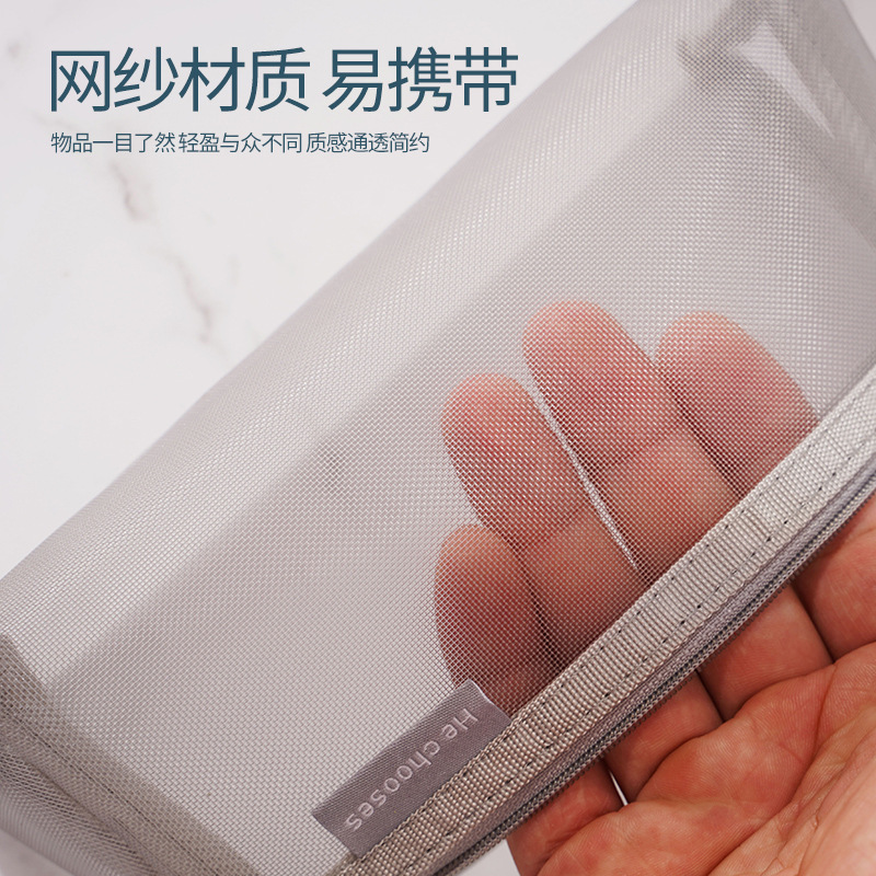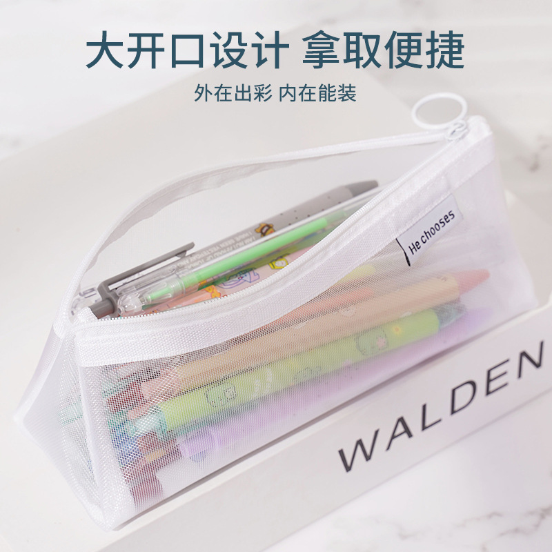 简约透明网纱笔袋立体三角文具袋男女学生考试袋大容量文具盒