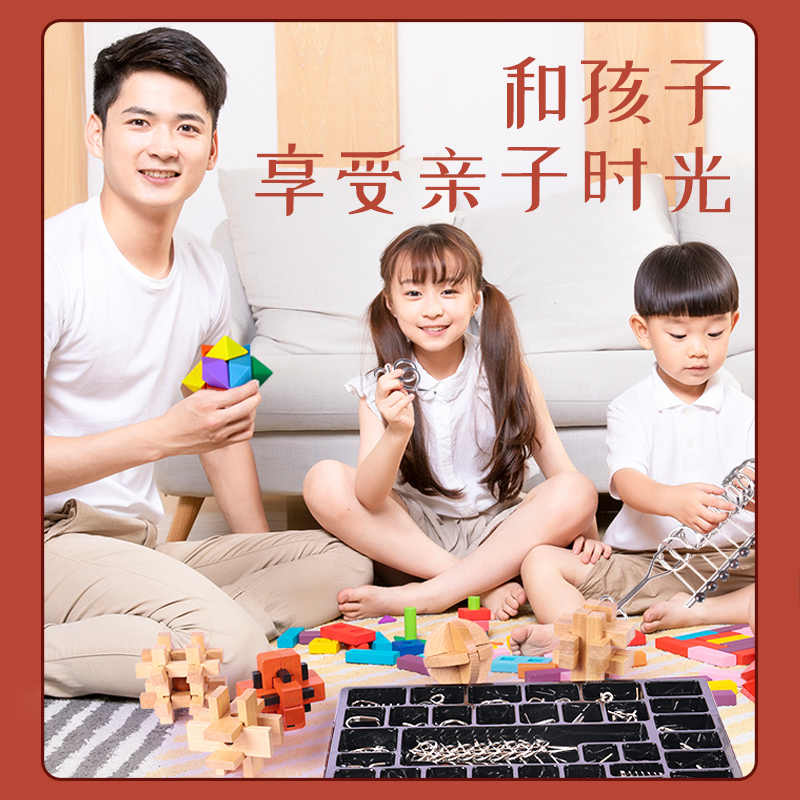 九连环智力解扣益智玩具鲁班锁孔明锁全套儿童小学生24件套不锈钢
