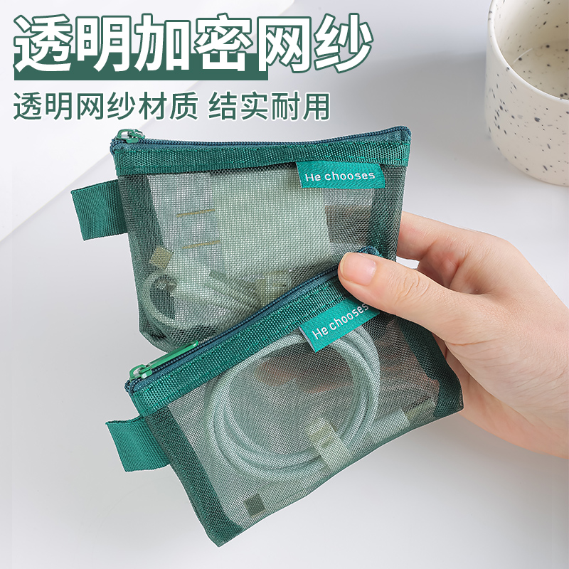 大容量复古彩色收纳包网纱简约拉链随身袋旅行迷你便携零钱包数据线耳机手机配件化妆包钥匙U盘U盾卡包证件袋