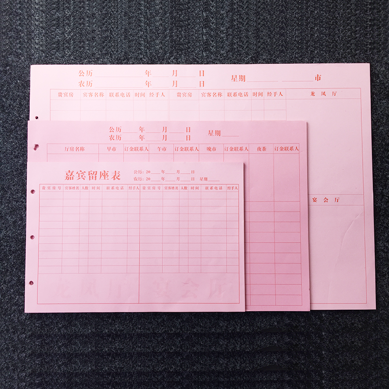 嘉宾留座簿贵宾订席封皮套本餐饮酒店酒楼包房订餐订位内页订座薄