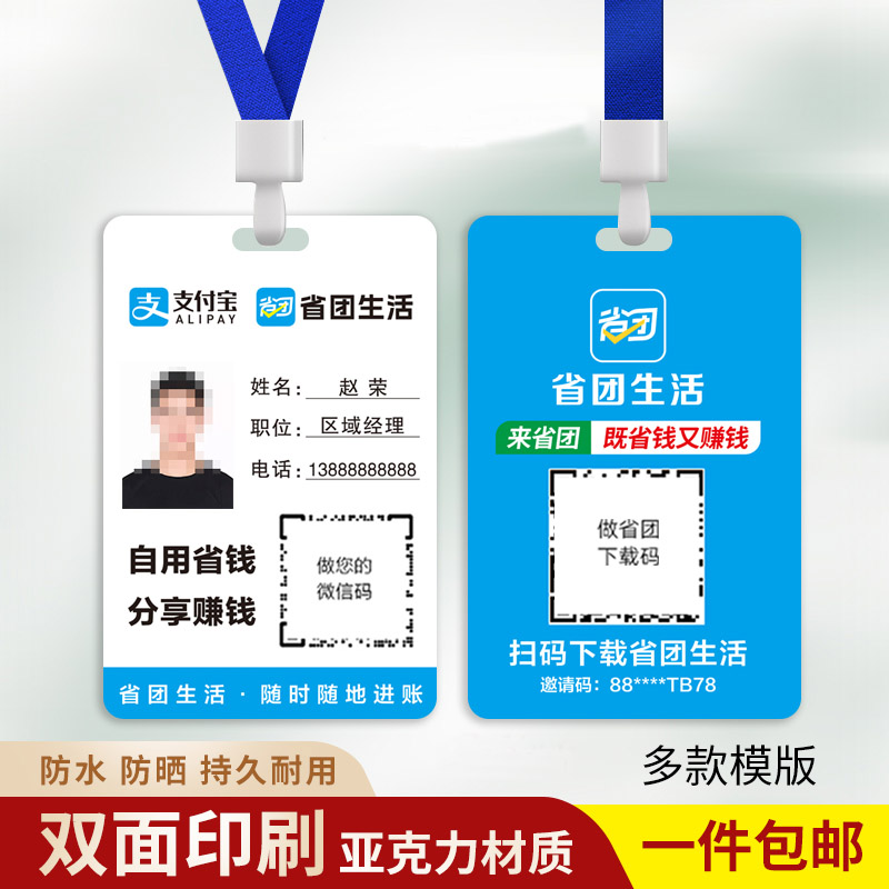 省团生活挂牌支付宝碰一碰一下工作证件地推工牌吊牌胸牌定制卡套