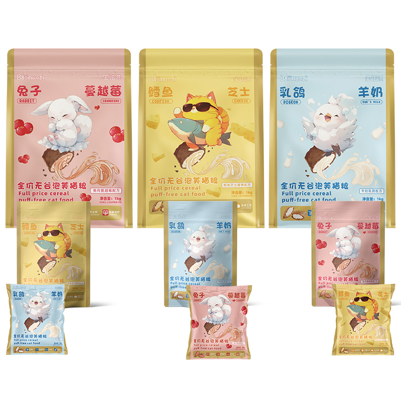 宝诺滋泡芙夹心猫粮新工艺鲜肉注浆全价无谷乳鸽鳕鱼兔肉羊奶膨化