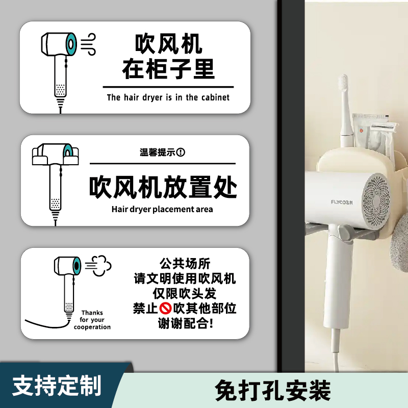 酒店宾馆民宿客房吹风机放置处文明标语牌健身房瑜伽室浴室只能吹头发禁止吹其他部位温馨提示牌吹风机在柜子