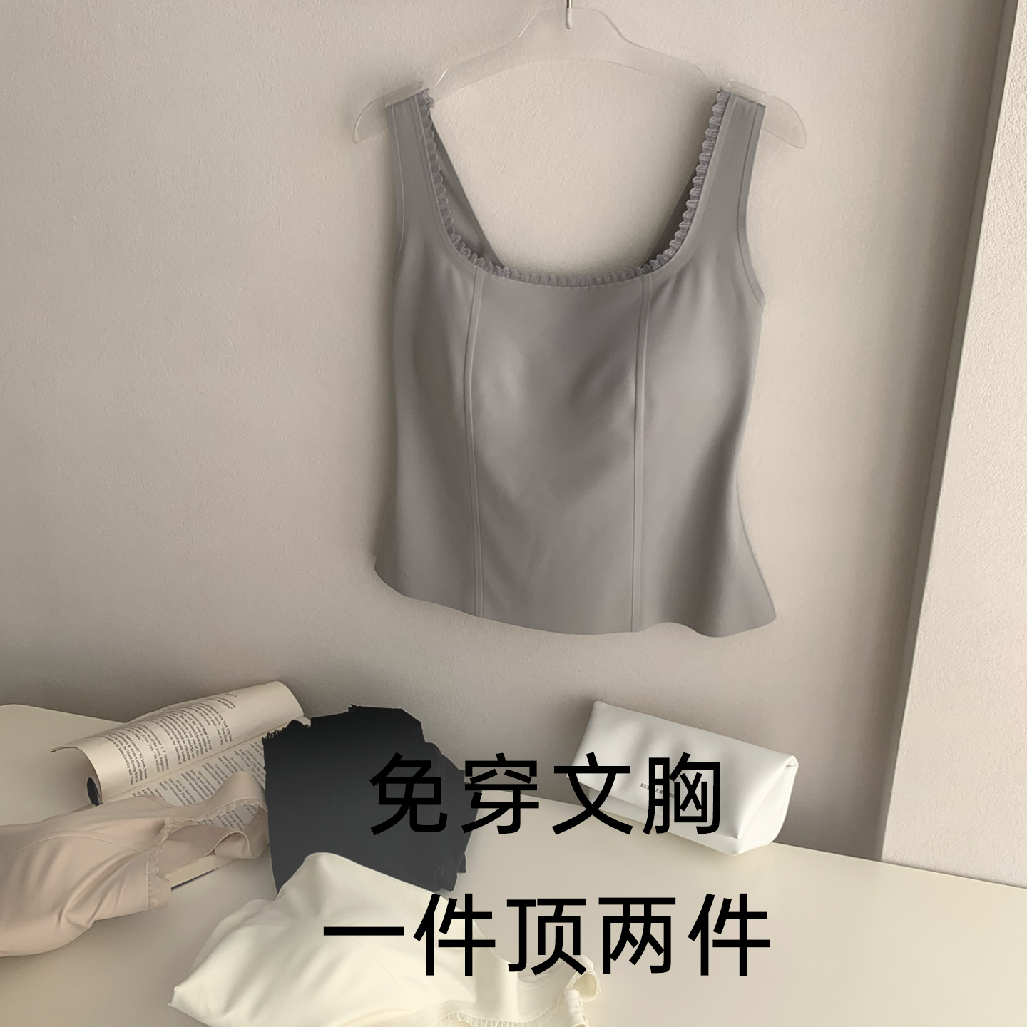 半练白色蕾丝吊带背心女新款带胸垫打底内搭免穿文胸美背上衣外穿