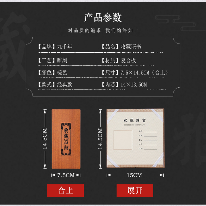 迷你版收藏证书外壳定制木板雕刻古玩文玩翡翠作品鉴定获奖证书