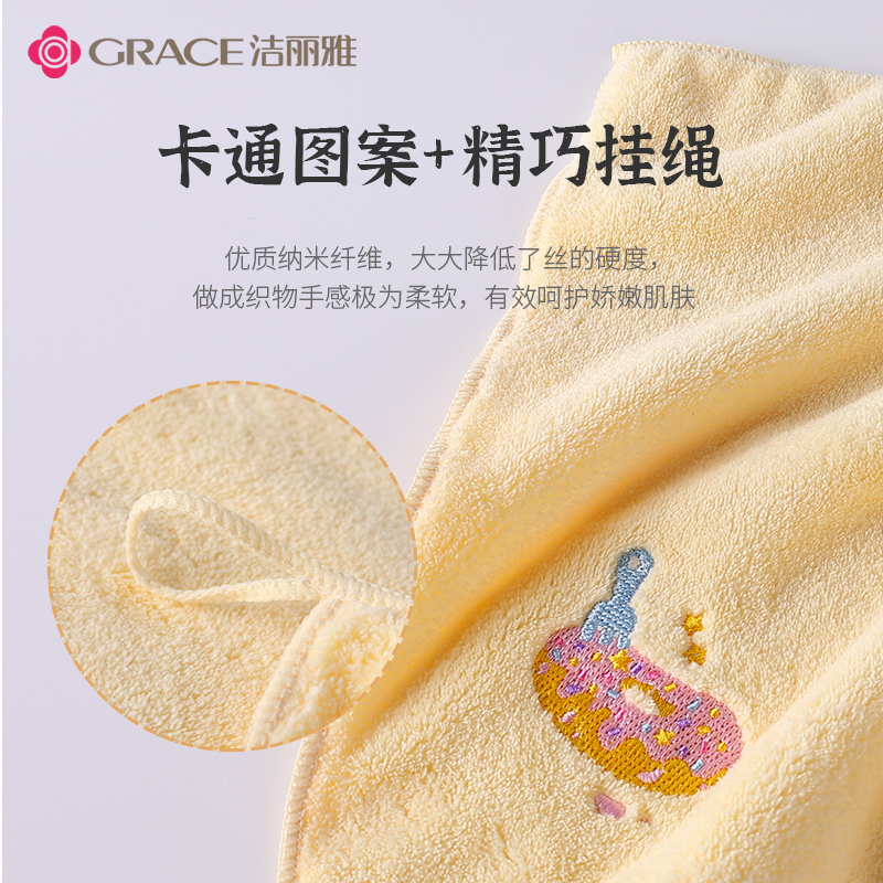 3条洁丽雅擦手巾可挂式卡通吸水速干厨房方巾儿童洗脸家用小毛巾