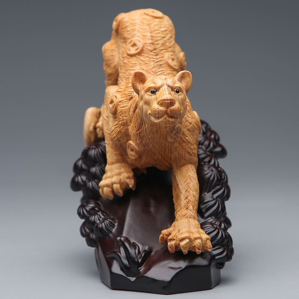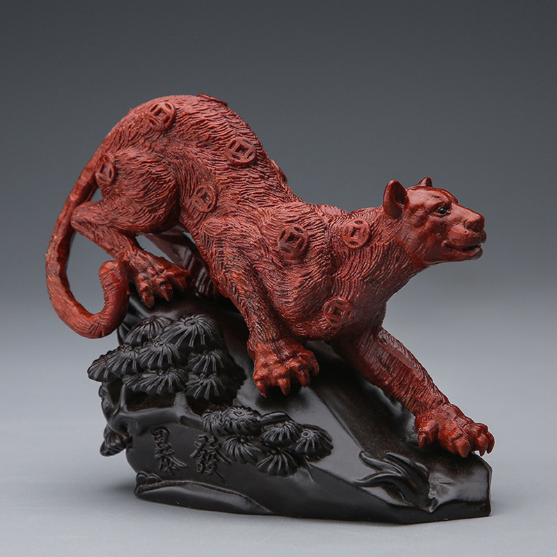 一路豹发暴1富金钱豹崖柏木雕血檀黄杨木摆件工艺居家开业送礼品