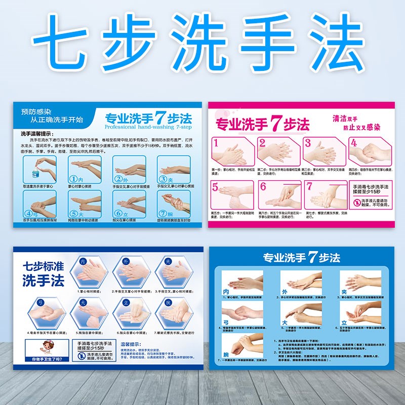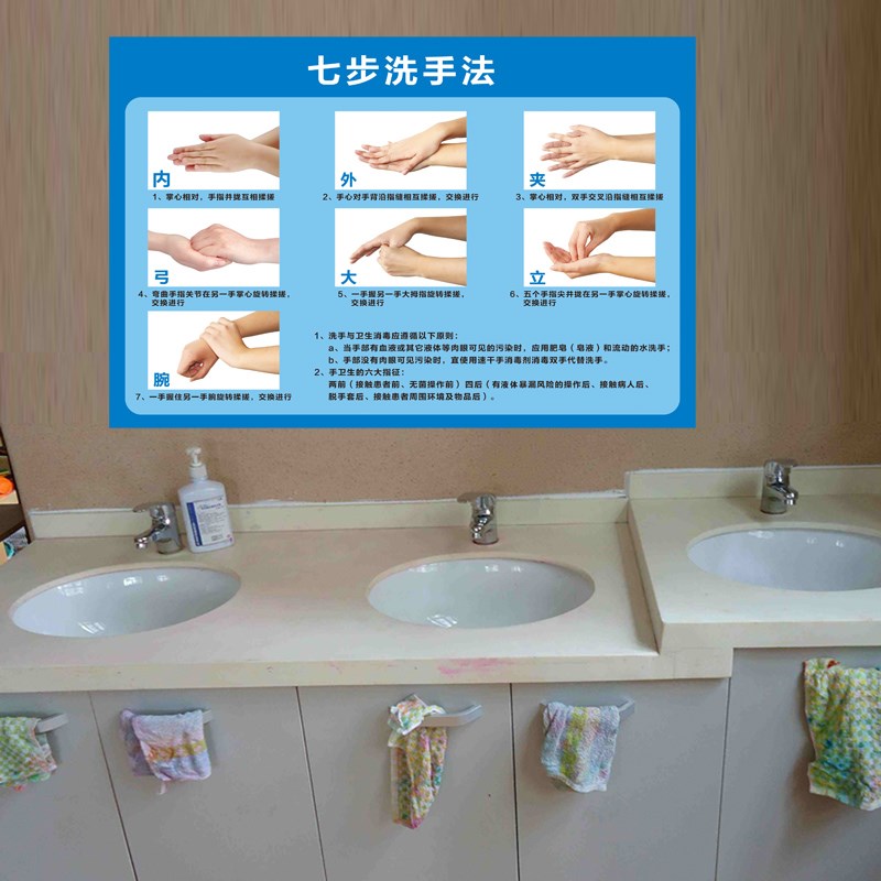 现货速发七步洗手法墙贴7步洗手法墙贴步骤图医院标识牌洗手消毒