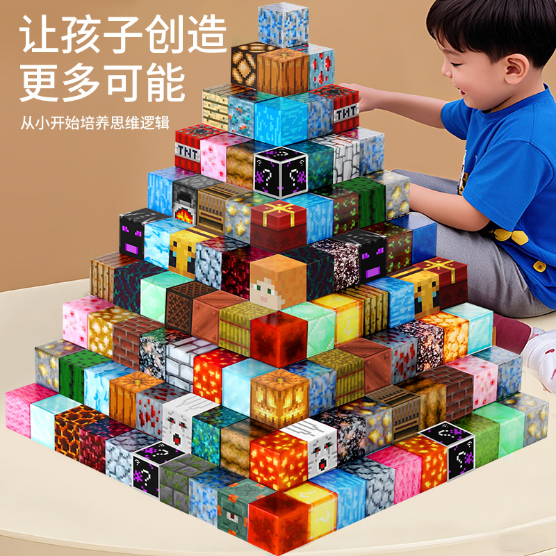 磁力方块积木我的世界儿童小男孩磁力片全套益智拼装磁吸拼图玩具