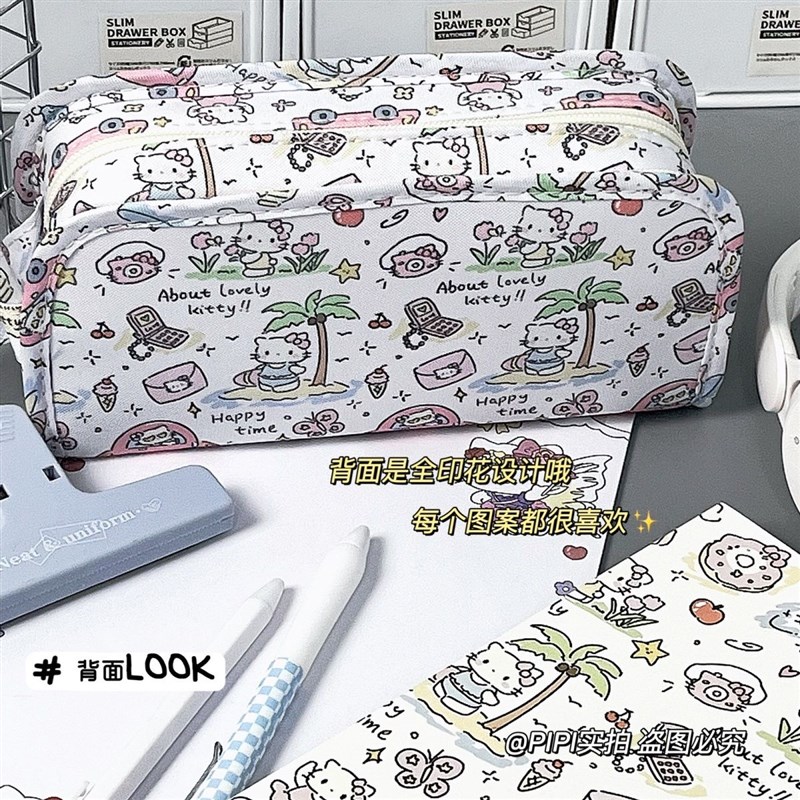 速发新款大容量猫印花痛包透明pvc笔袋多层少心高颜值少心文具