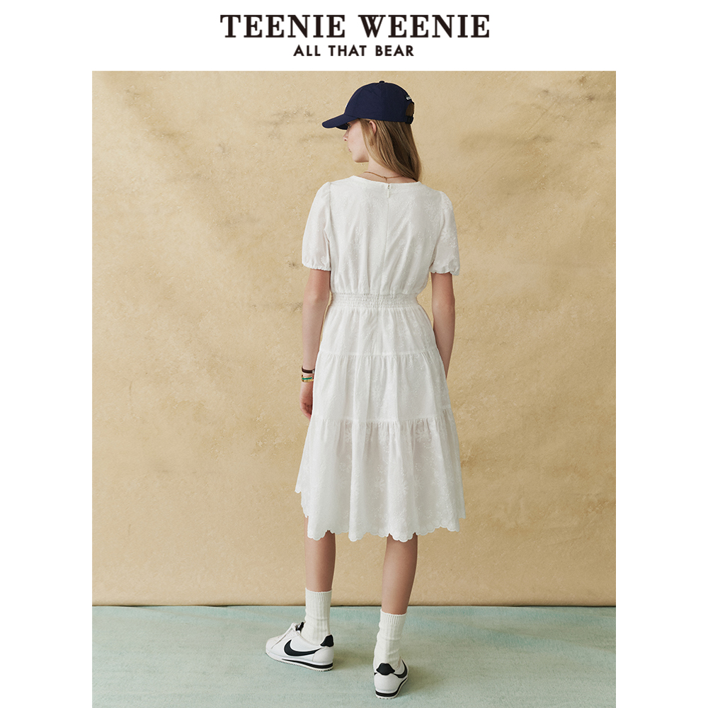 TeenieWeenie小熊女装白色连衣裙2025夏季新款浪漫法式茶歇中长裙