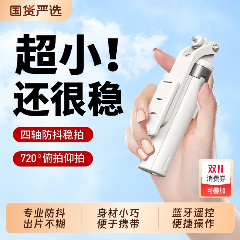 绿联自拍杆迷你2025新款旅游便携式通用360度旋转拍照神器手持防抖稳定拍摄手机支架轻便vlog蓝牙落地三脚架
