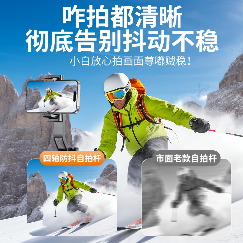 2025新款防抖自拍杆三脚架手机拍摄支架手持便携式全景360度旋转多功能旅游拍照神器抖音落地直播四脚架2025