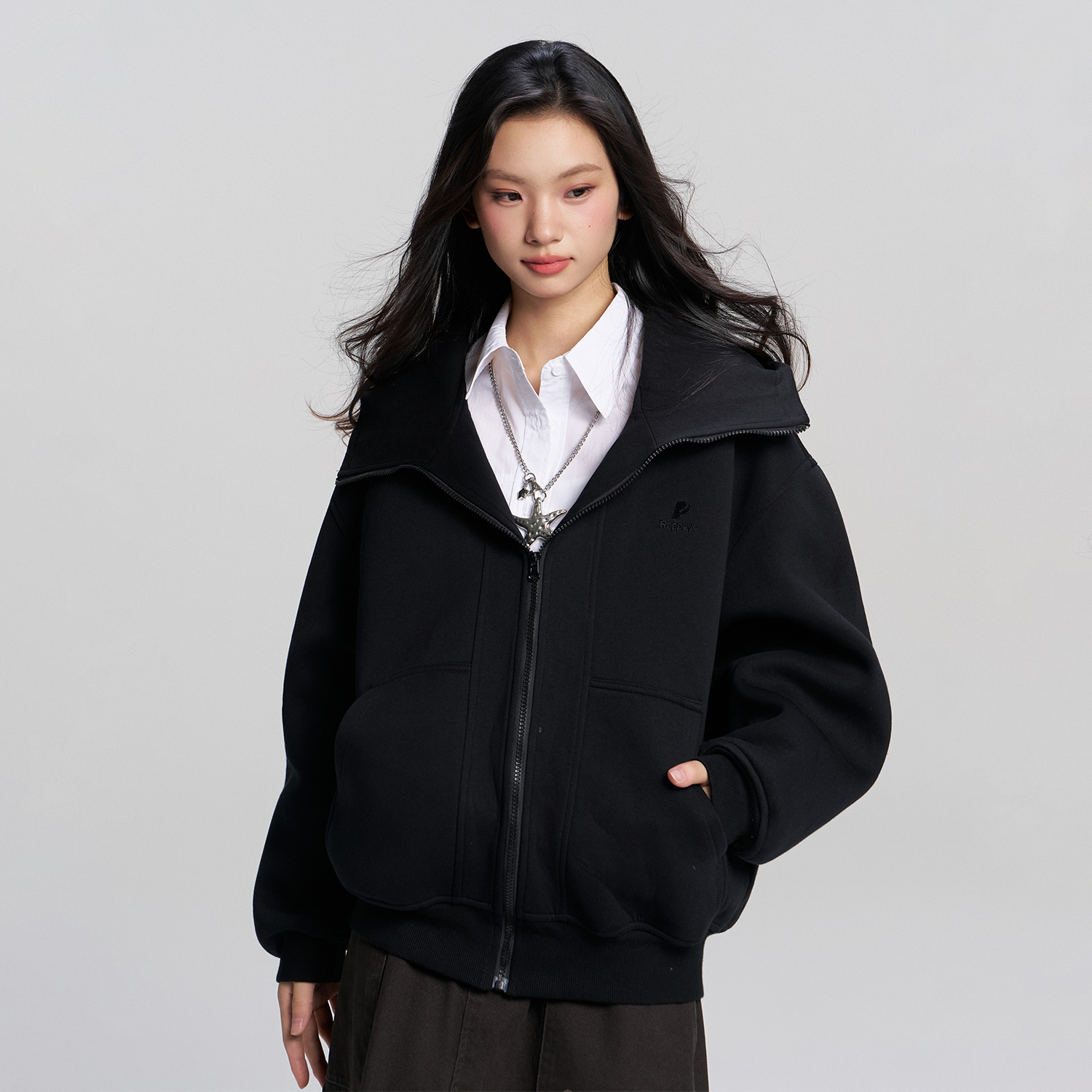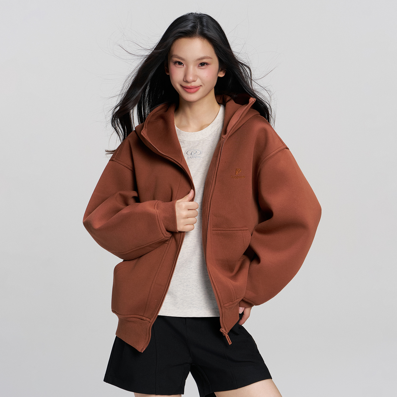 RAPPEYE 重磅廓形连帽美式复古宽松情侣开衫外套上衣机能拉链卫衣