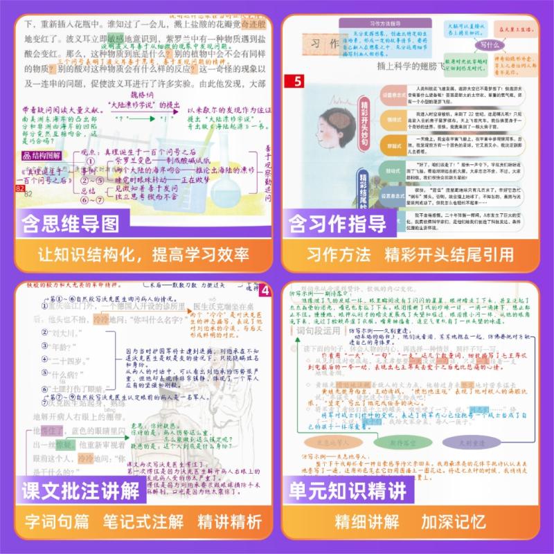 抖音同款小学语文课堂笔记贴六年级上下册人教版小学生贴在书透明学霸状元教材预习随堂资料书古诗一年级复习字词句6年级思维文学