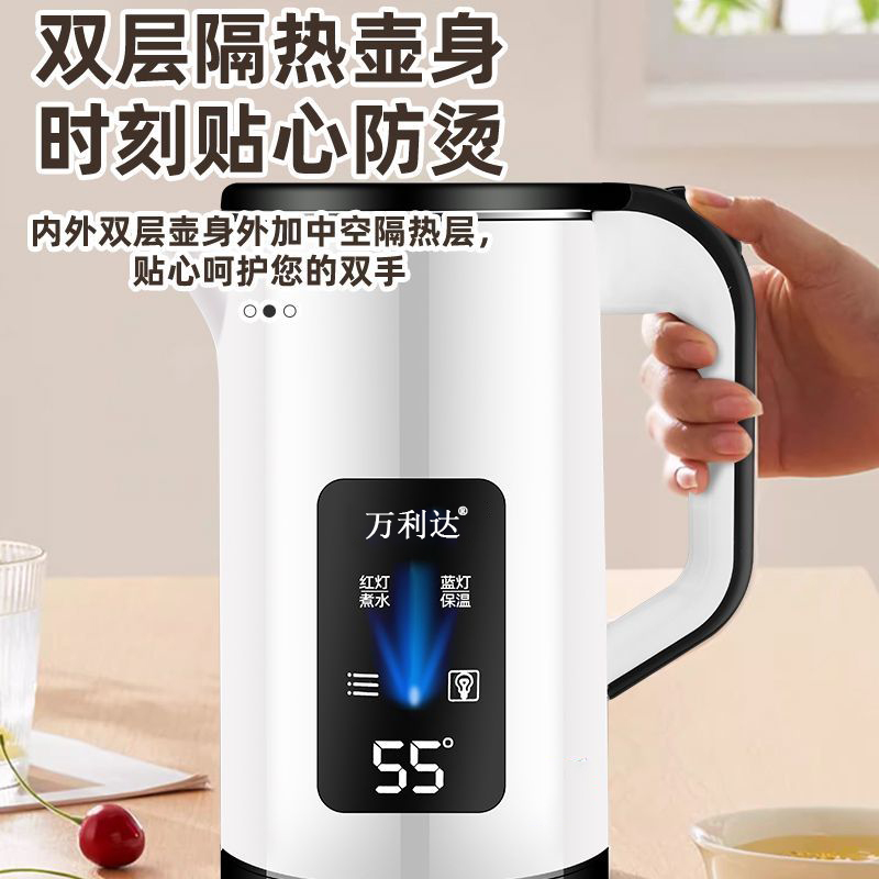 万利达烧水壶家用电热水壶耐用智能恒温不锈钢保温一体新款开水壶