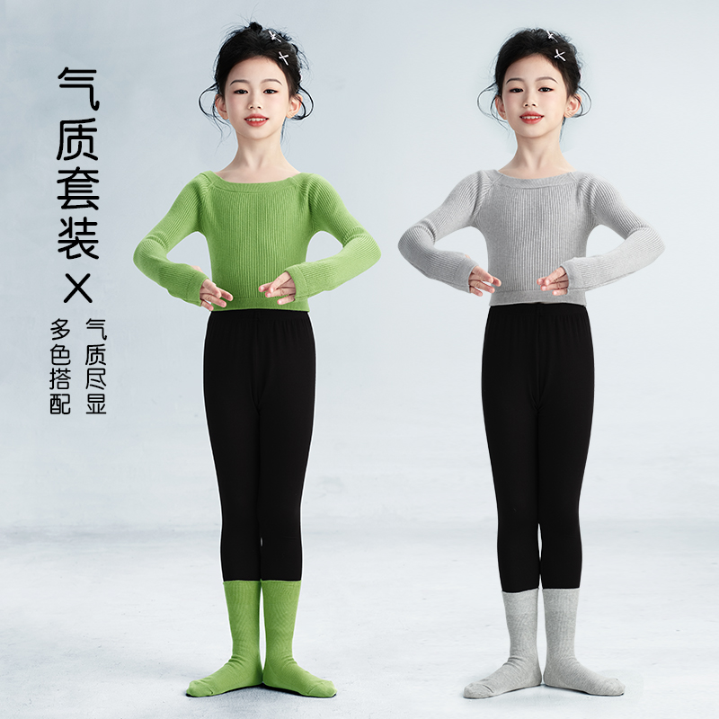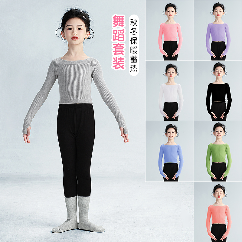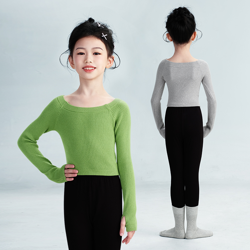 儿童舞蹈服女童秋冬一字领毛衣长袖上衣坎肩外搭芭蕾舞体操练功服