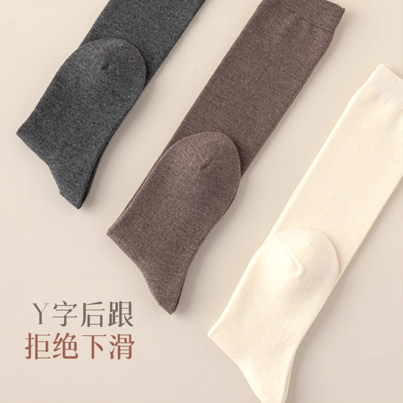 5双装 往往精梳棉质3A抗菌女士袜子中长筒袜纯色休闲男袜秋冬季