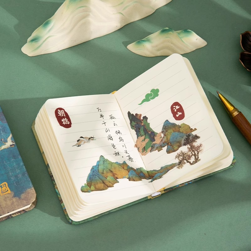A7口袋本创意千里江山图笔记本子小号日记本中国风手账本小学生高颜值记事本本子随身便携成人加厚迷你手帐本