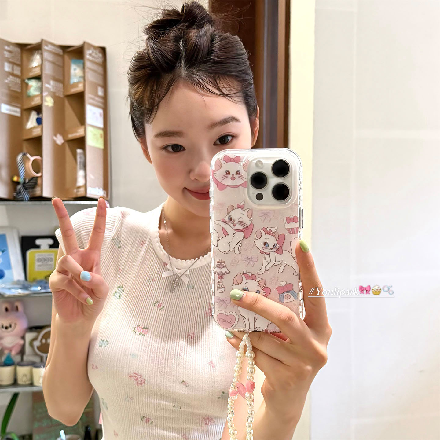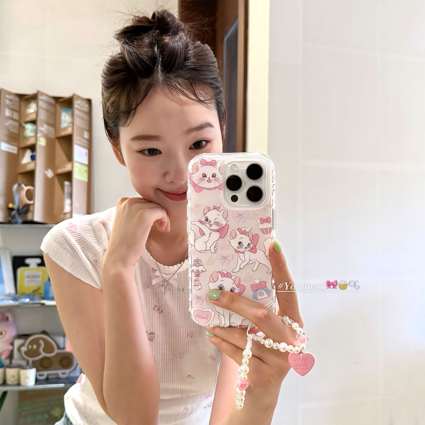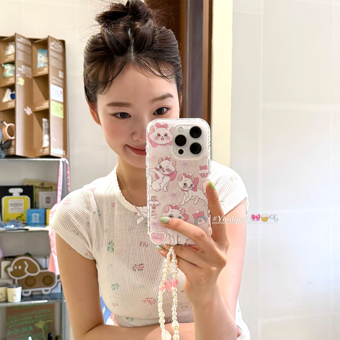 由里公园ins可爱甜美少女粉色猫咪挂链15适用16pro苹果16ProMax手机壳iPhone16全包14新款14Promax保护套13韩