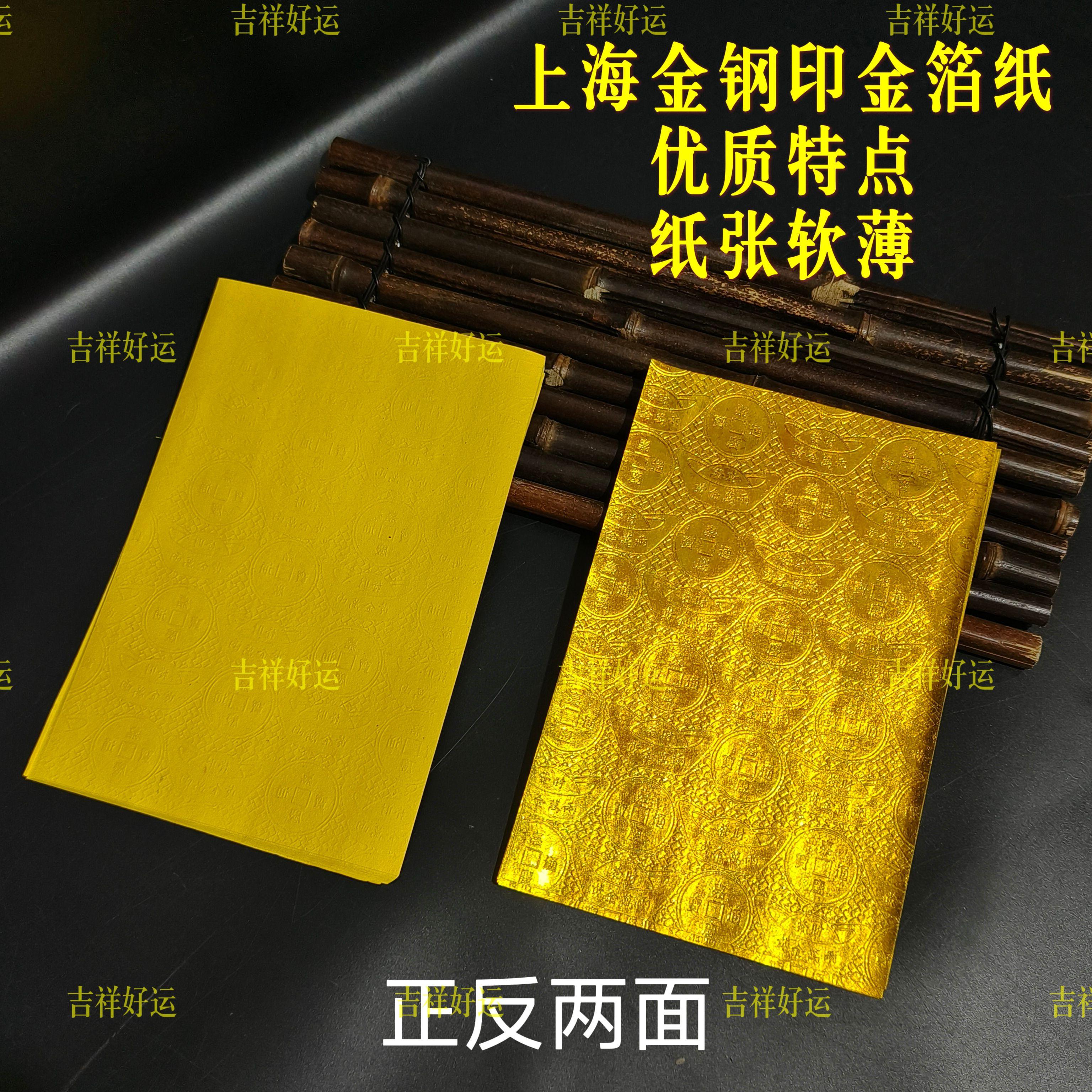 优质上海金钢印软金箔纸 压暗纹14*21cm约100张折元宝莲花清明节
