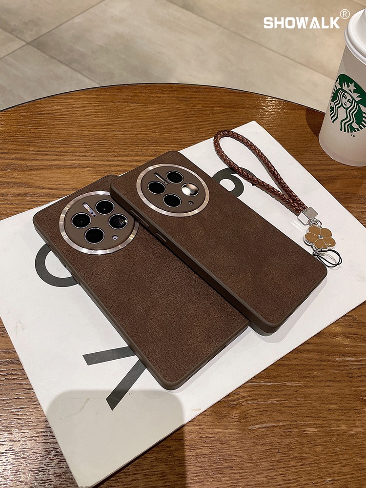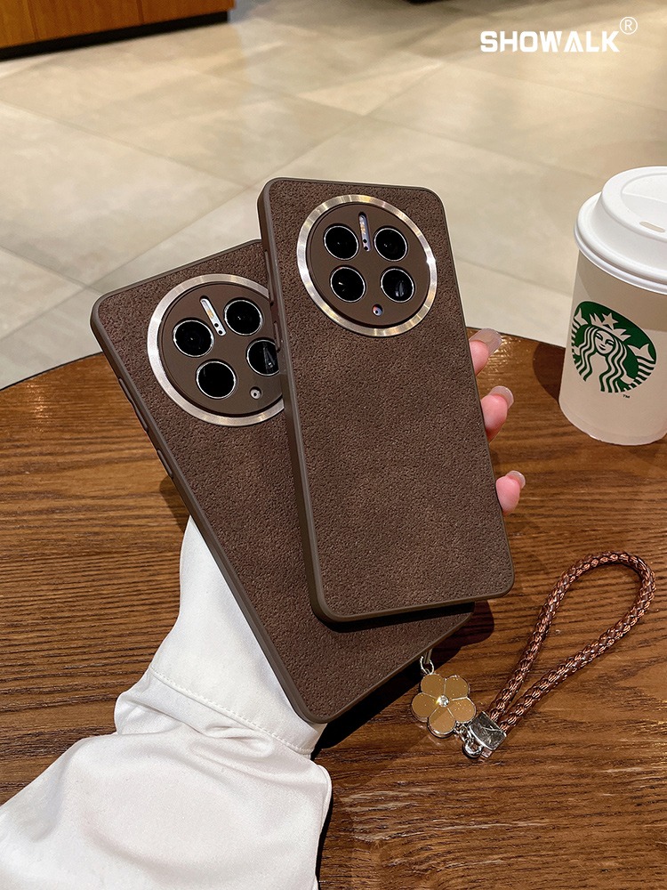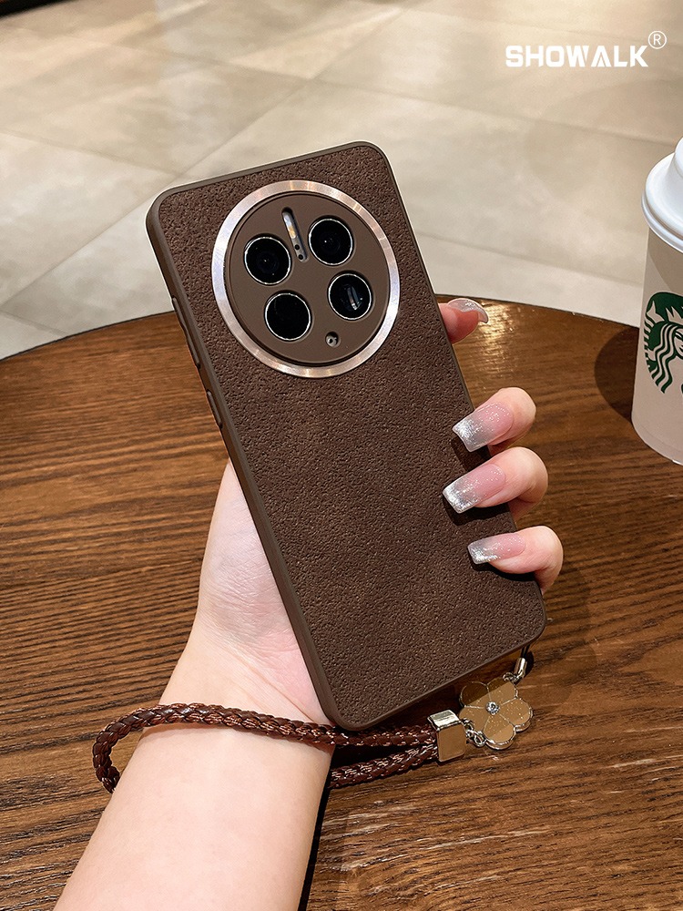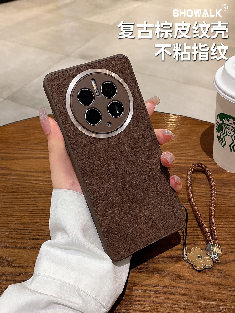 复古深棕色适用华为mate50pro手机壳mate40pro新款皮纹保护套mete30高级感40e防摔30por奢华全包金属圈mt手链