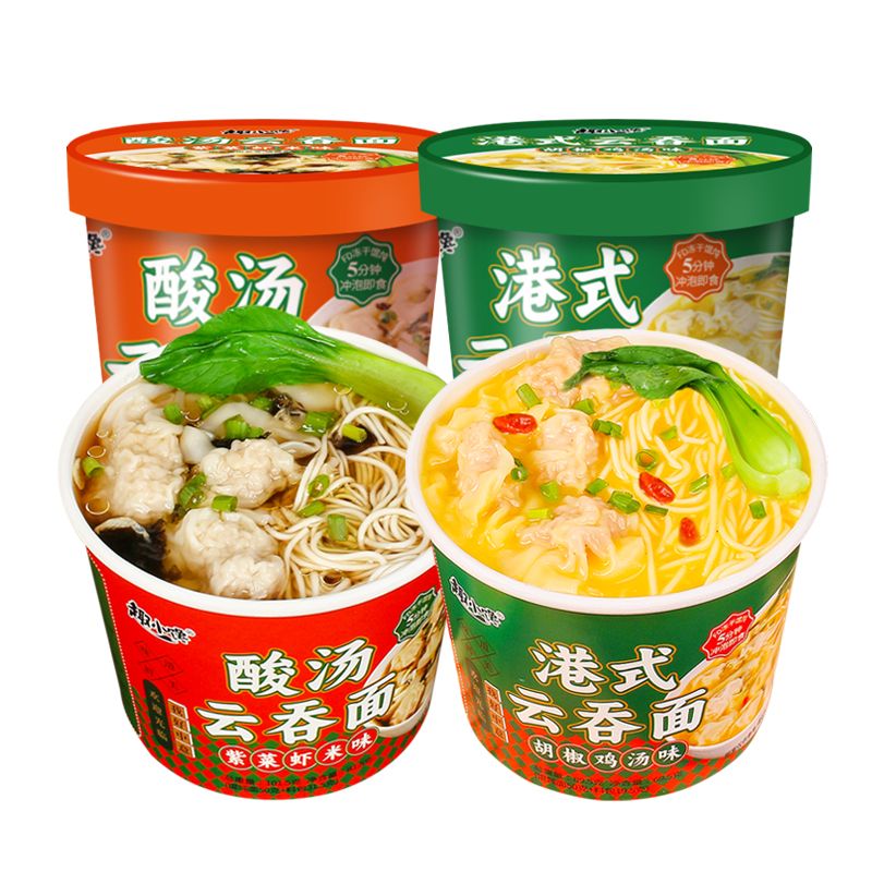 港式云吞面冲泡免煮桶装速食拉面馄饨鸡汤紫菜虾米方便面即食面条