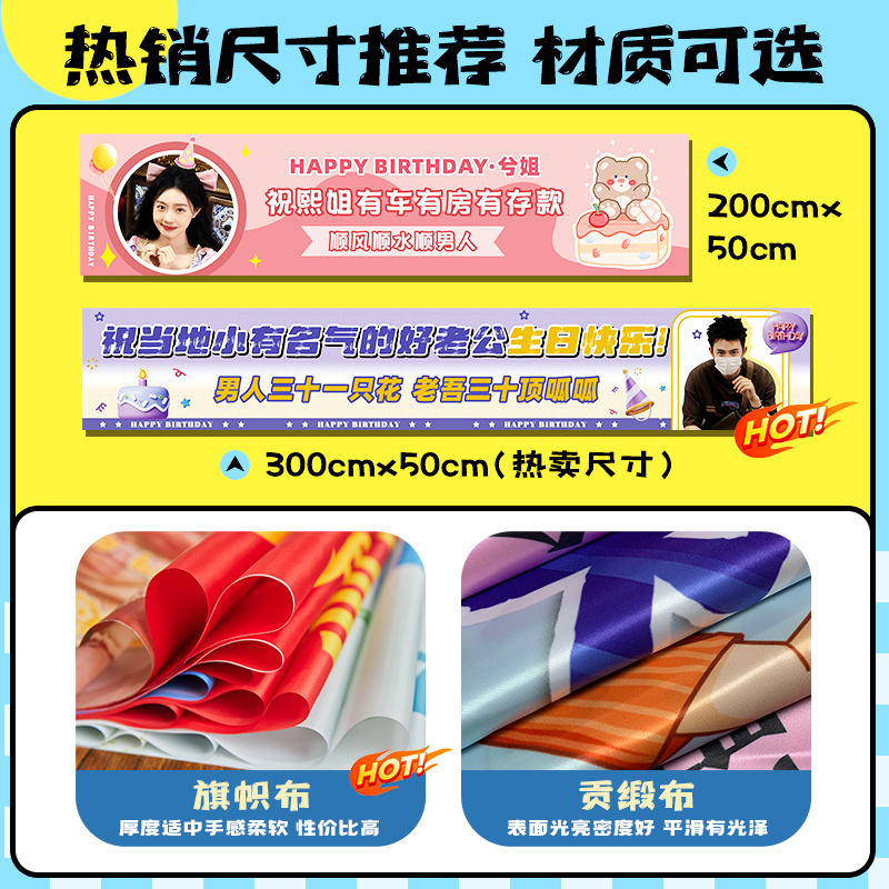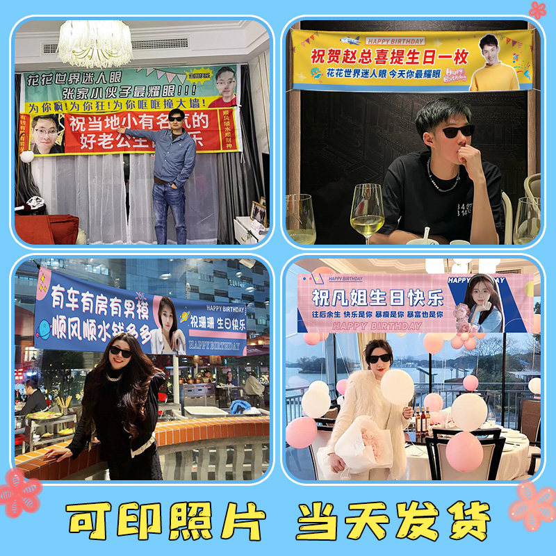 生日横幅定制男生搞怪拉条老公30岁派对装饰挂布男士朋友庆生快乐手持旗帜制作女生闺蜜聚会应援彩色条幅定做
