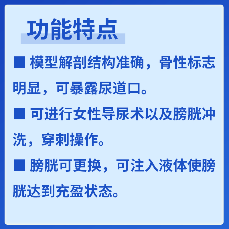 女性膀胱穿刺模型骨性标志尿道口暴露可换膀胱充盈叩诊穿刺落空感阻力逼真反复训练导尿冲洗生理狭窄医学教具