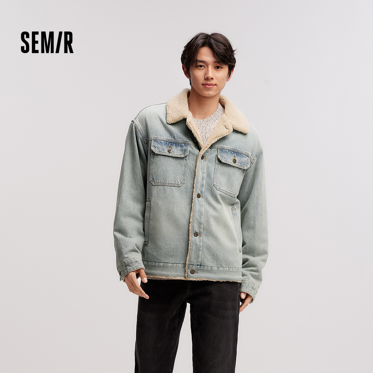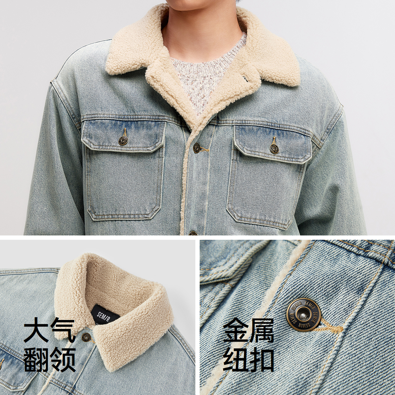 森马牛仔外套男冬季多口袋复古工装夹克潮街头酷帅翻领上衣小宽松