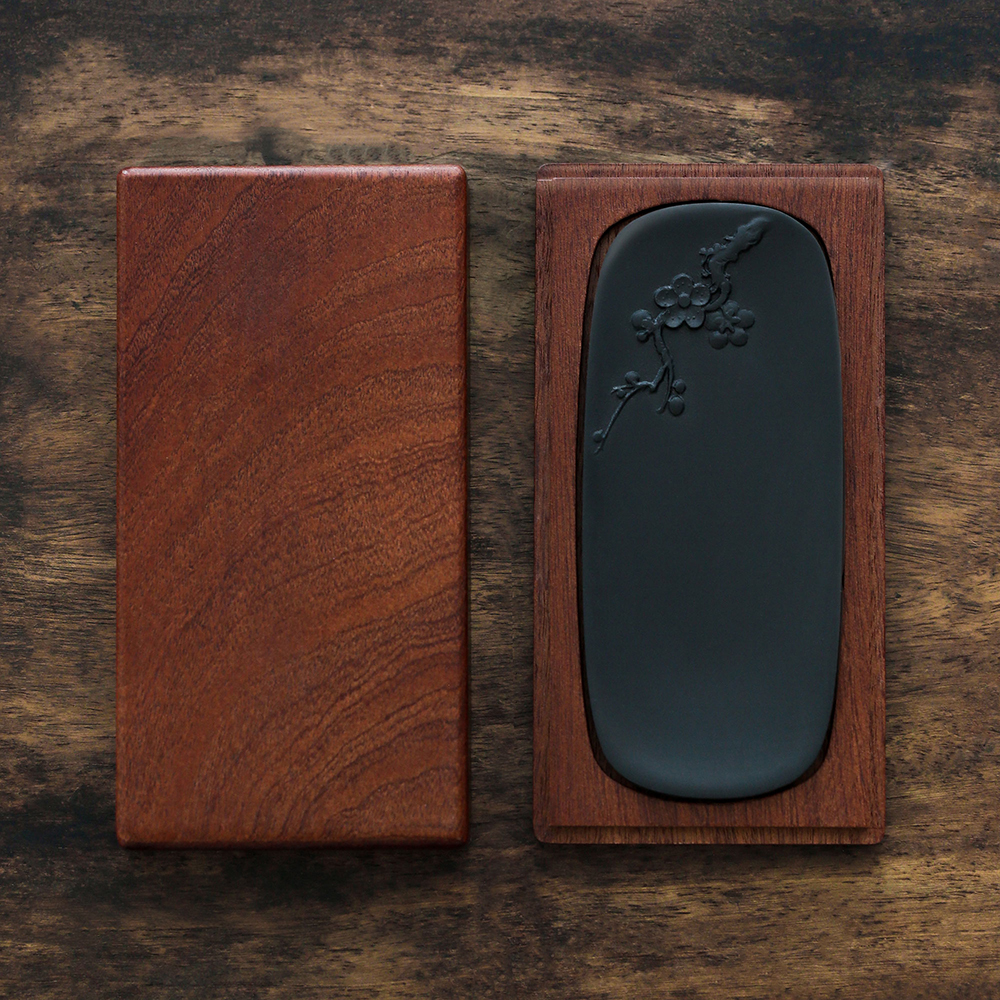 问心堂新坑梅花砚台黑龙尾歙砚书法练习磨墨原石砚台初学者用墨池