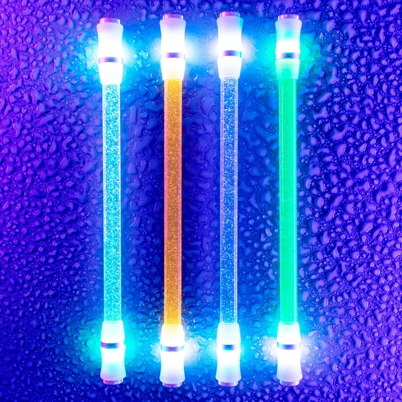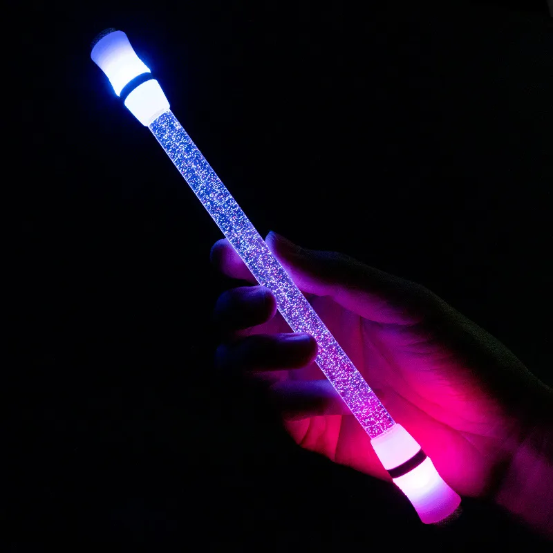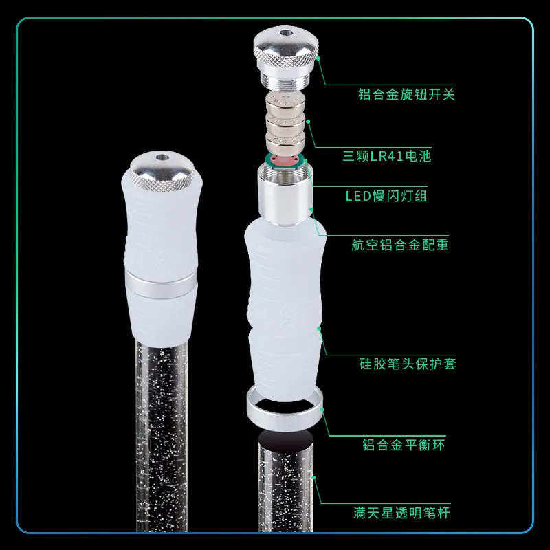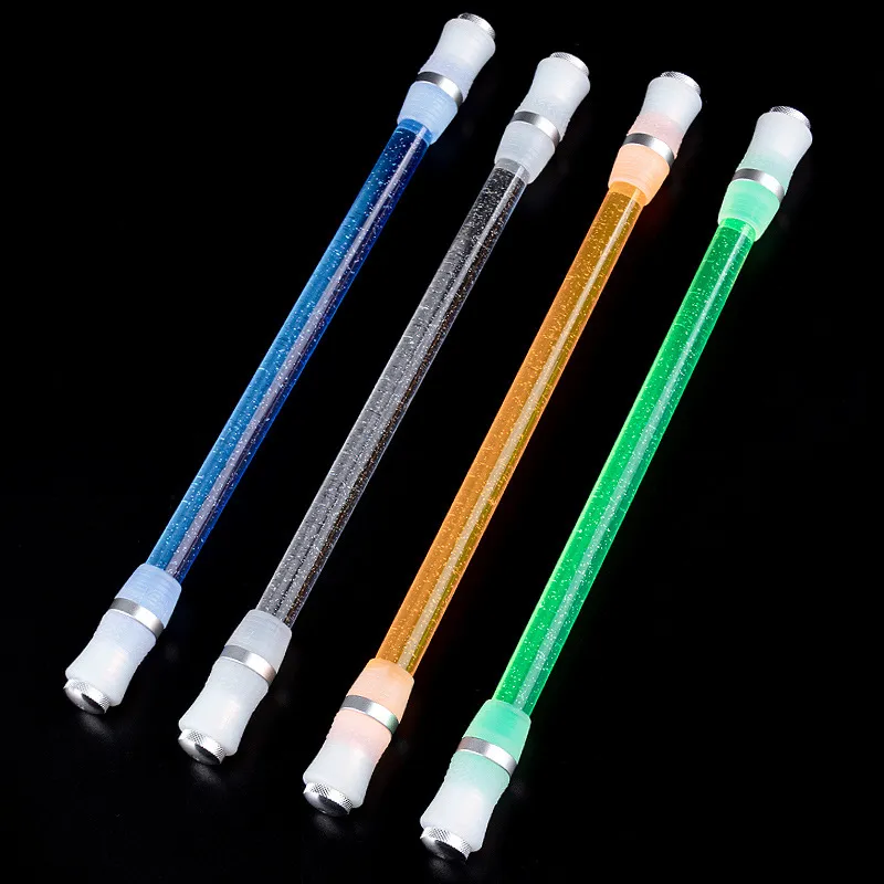 转笔者水晶七彩LED芯片呼吸灯合金CNC笔头阳极氧化饰圈发光转转笔