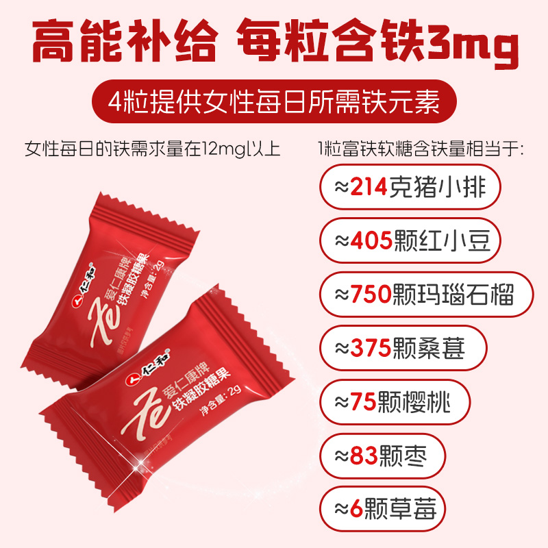 仁和富铁补铁的软糖补血贫血女性孕妇儿童富铁软糖正品官方旗舰店