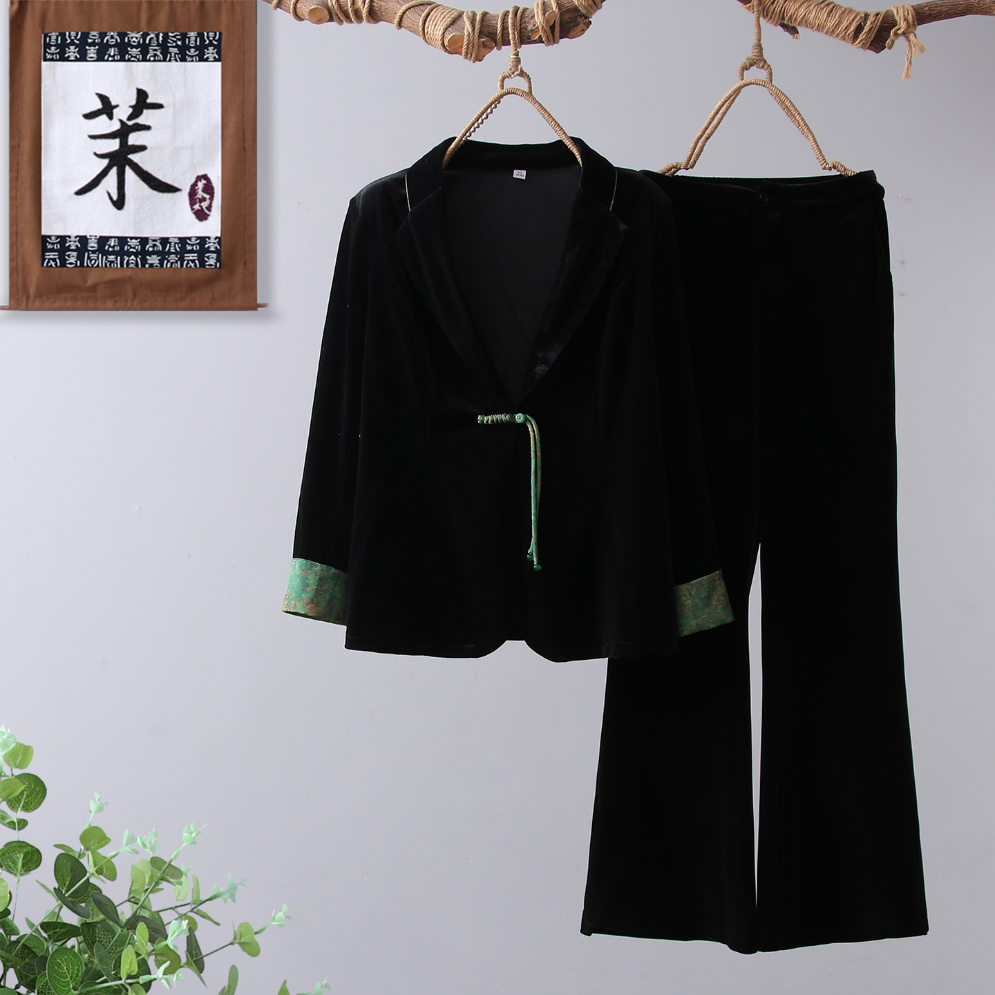 新中式妈妈装新款洋气金丝绒春秋套装中老年女装国风小西装两件套
