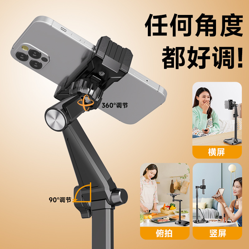 加重桌面懒人手机平板拉升支架视频俯拍多功能双机位旋转支架