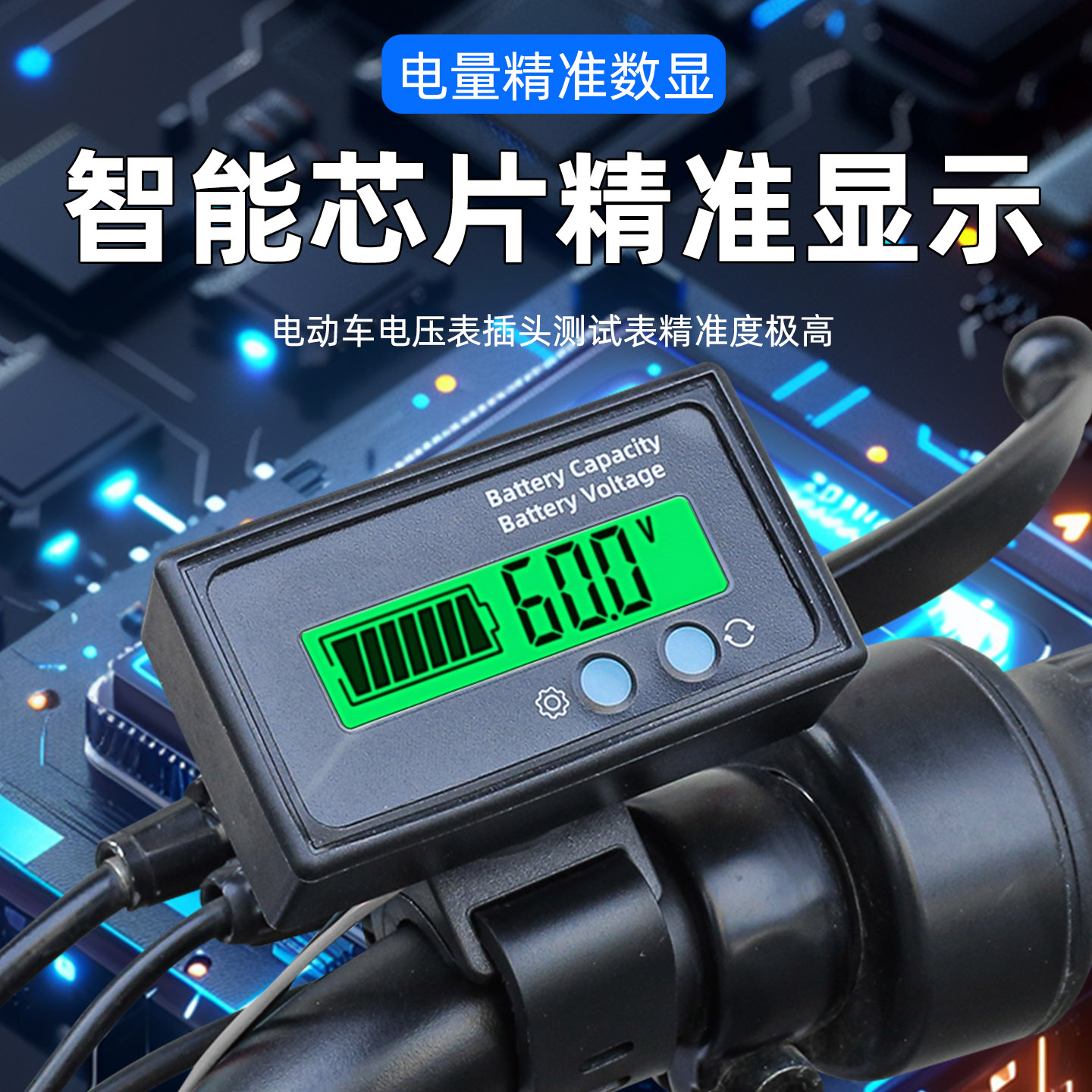 电动车铅酸电池三元锂电池电量显示器12V24V48V60V72V电压电量表