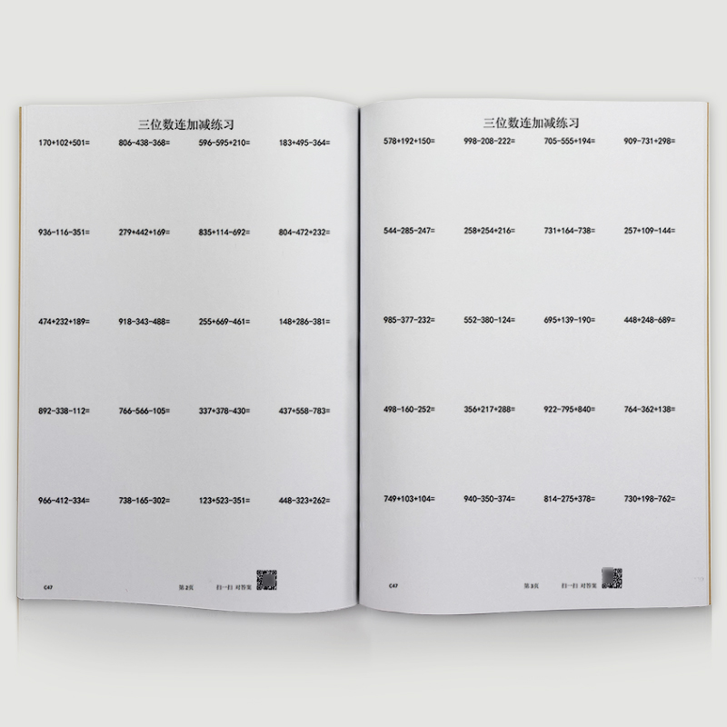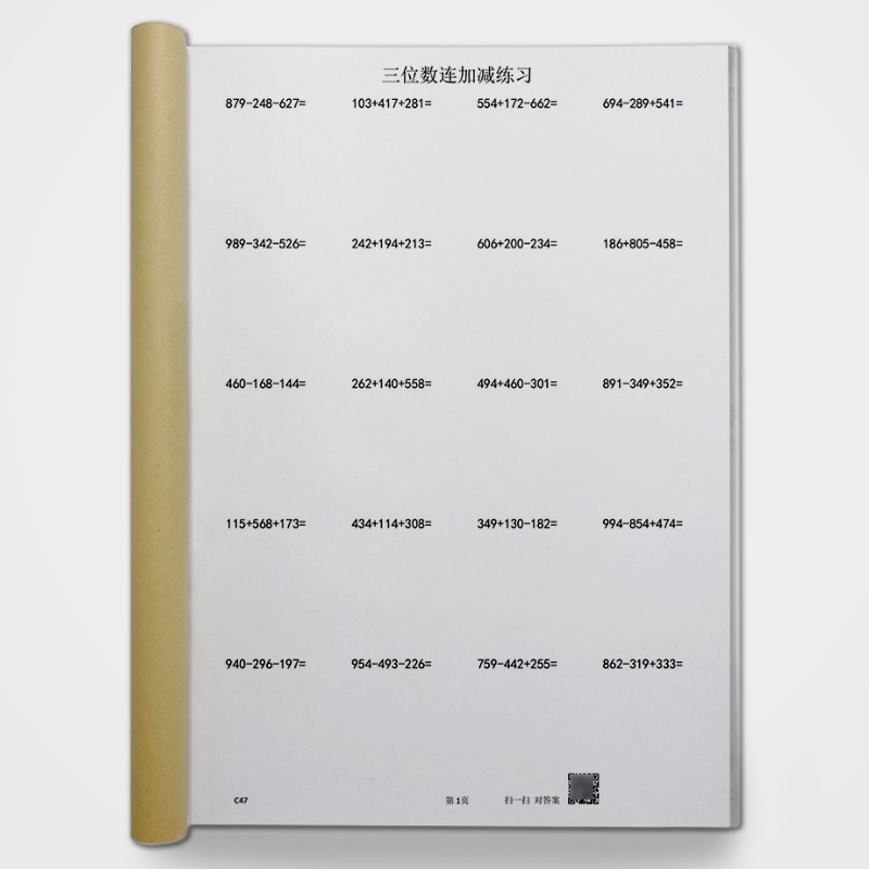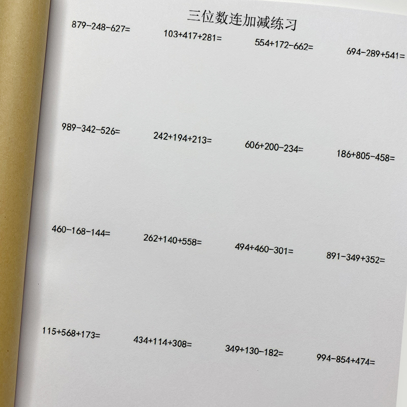 三年级数学练习本1000千以内竖式三位数连加连减混合计算本