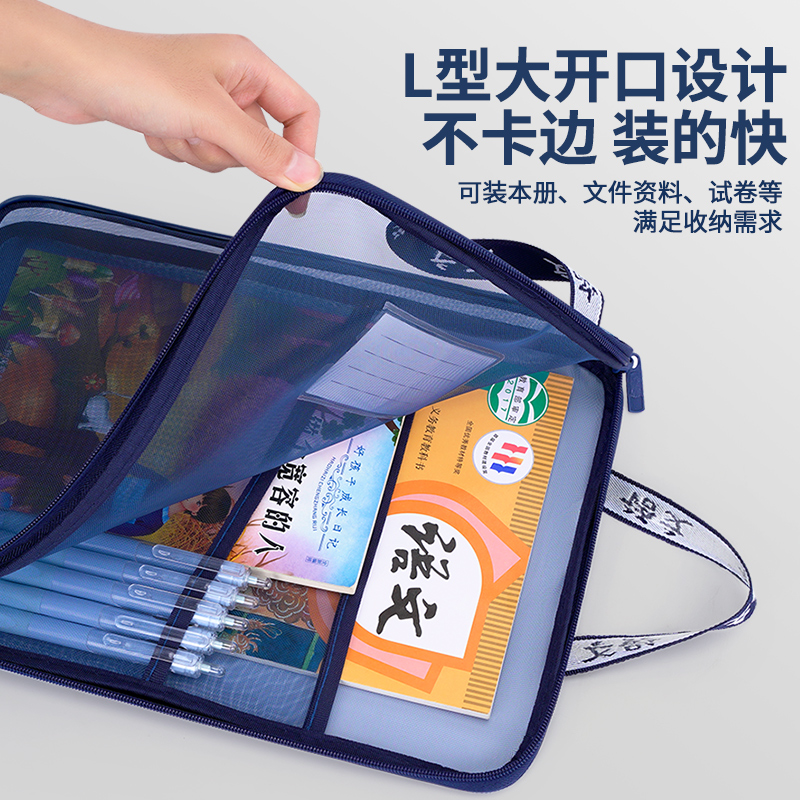 手提3层高密大开口L型学科分科网纱A4文件袋专为学生设计收纳袋