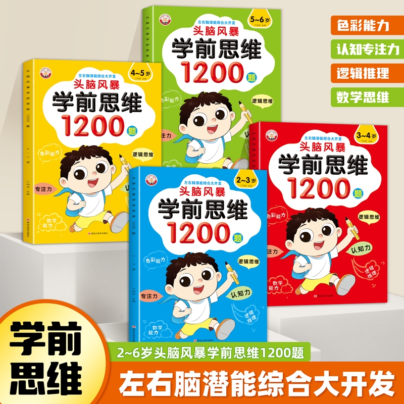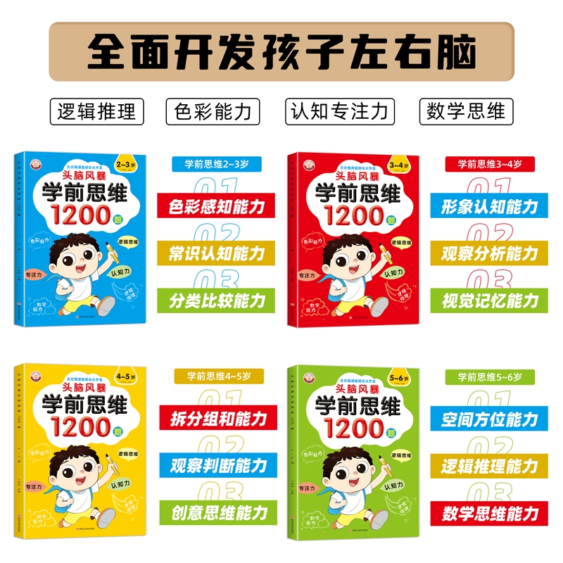 幼儿全脑开发逻辑思维训练1200题幼儿园小中大班2-3-4-5-6岁宝宝左右脑智力开发专注力启蒙早教学前班益智连线认知游戏书组成