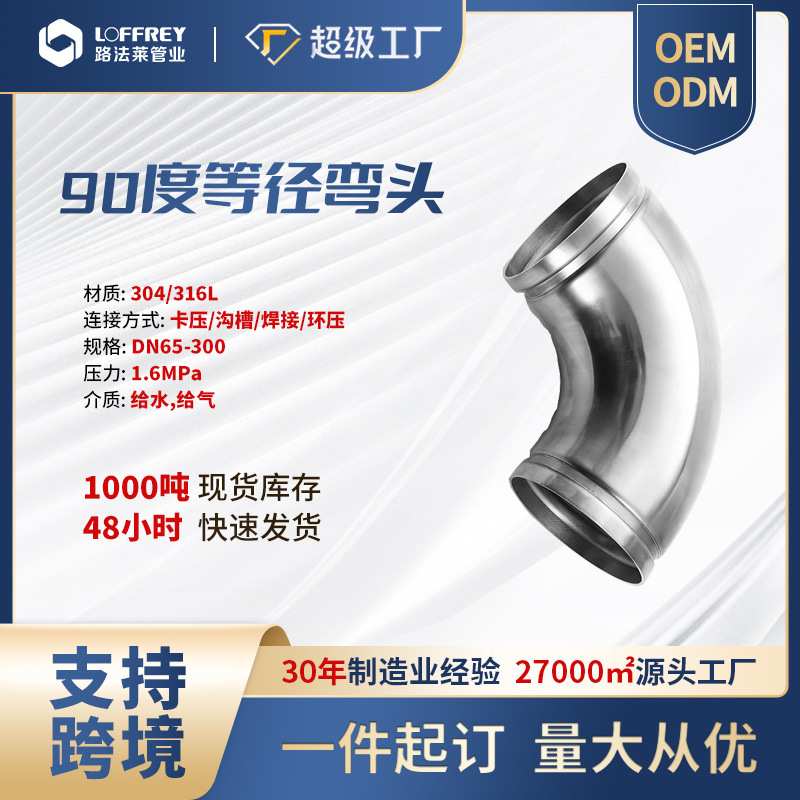 沟槽式不锈钢90度等径弯头弯管管件配件焊接耐磨冲压直角弯头