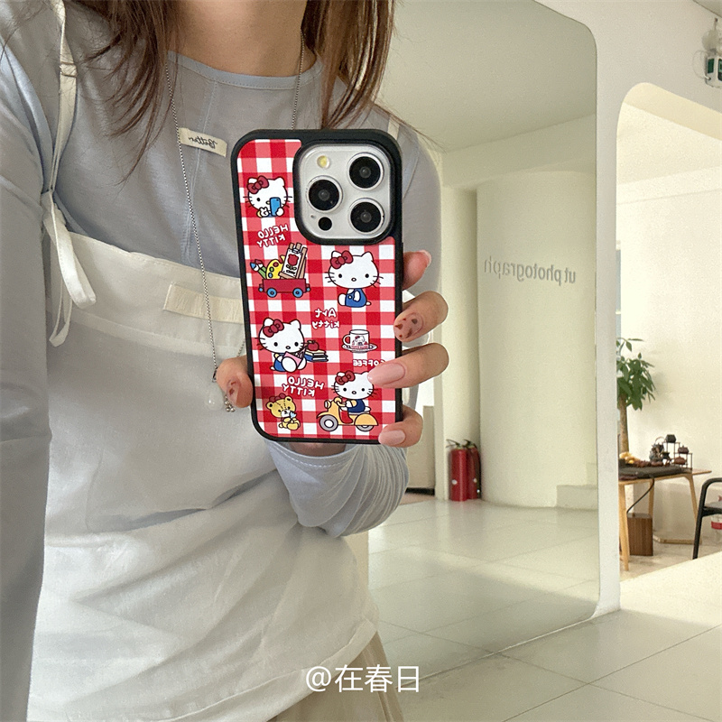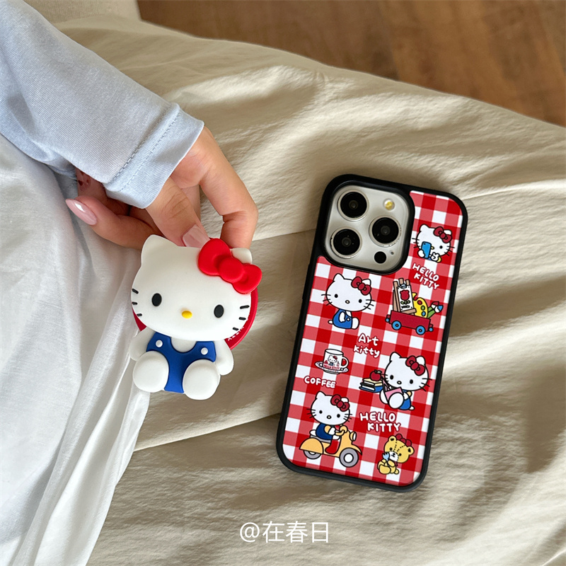 在春日韩系ins卡通红格纹kt磁吸立体硅胶支架适用iPhone17promax全包黑边15promax新款16pro保护壳苹果13/14p