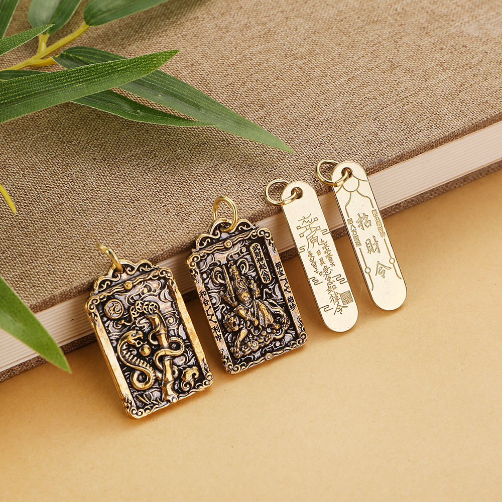 【工厂价】纯黄铜五路武财神赵公明令牌车钥匙扣挂件十二生肖葫芦