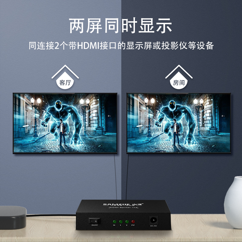 山泽HDMI分配器一进二出1进4出一拖四hdni高清分线器电脑屏幕同时显示1080P分屏器